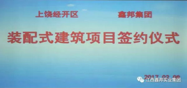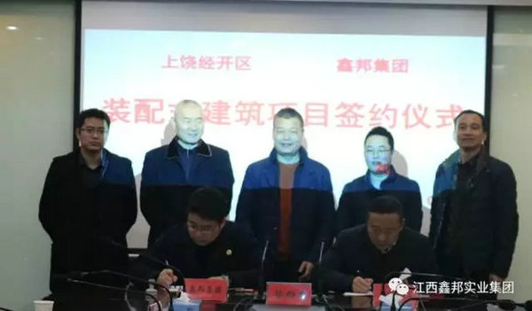 2017年02月08日鑫邦集團與上饒經(jīng)濟技術開發(fā)區(qū)管委會在江西省上饒鳳凰西大道登封商務大廈成功簽約,投資建設裝配式建筑生產(chǎn)基地,涵蓋裝配式鋼結構建筑和裝配式混凝土建筑。