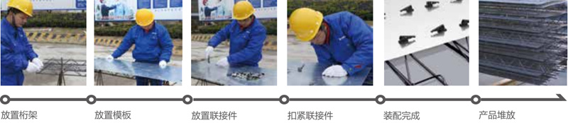 采用直角桁架形式,目前桁架高度70~100mm,上、下弦鋼筋直徑6~12mm,腹桿筋直徑4~4.5mm;施工階段承受施工荷裁,作為樓板中的鋼筋。